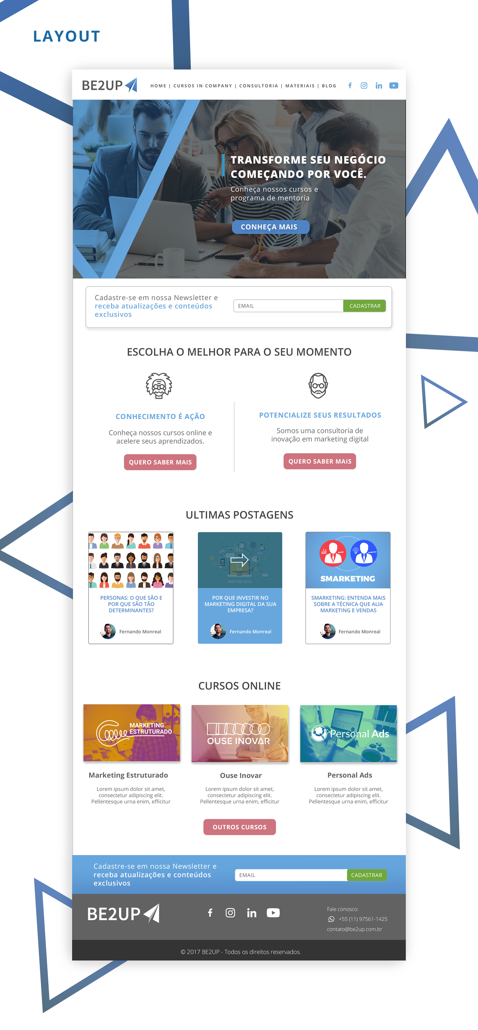 Projeto de Redesign da Identidade de Marca BE2UP, e desenvolvimento do site de acordo com a nova proposta.